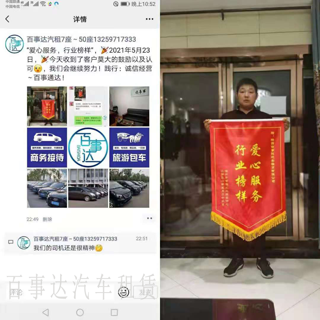 “弘揚(yáng)延安精神·堅(jiān)定初心使命”2021年5月23日深圳常德義工服務(wù)中心組織人員來(lái)陜參觀學(xué)習(xí),陜西百事達(dá)汽車租賃有限公司“愛(ài)心大巴”助力深圳常德義工服務(wù)中心延安紅色游,陜西百事達(dá)汽車租賃有限公司是一家主要為西安企事業(yè)單位,中外賓客,港澳臺(tái)同胞等社會(huì)各界提供西安租班車,西安旅游大巴車租賃,西安客車租賃服務(wù)的公司。在當(dāng)今競(jìng)爭(zhēng)激烈的汽車租賃行業(yè)中,陜西百事達(dá)租車公司克服了重重困難,以其真誠(chéng)的敬業(yè)精神,完善的服務(wù)與管理贏得了眾多客戶得贊許和認(rèn)同。同時(shí)也創(chuàng)造了西安租車公司的品牌。